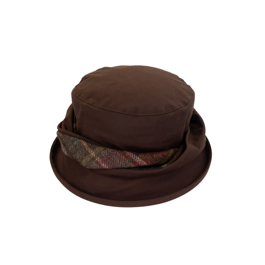 Ladies Wax Waterproof Harris Tweed Hat - Light Navy